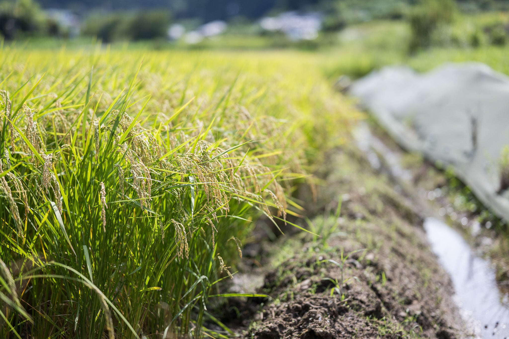 稲の育成に欠かせない最も大切なポイントが、水の管理。自社農園内には3本の地下水源、自社専用の貯水地があり、豊富な水資源を活用して美味しいお米を育てています。